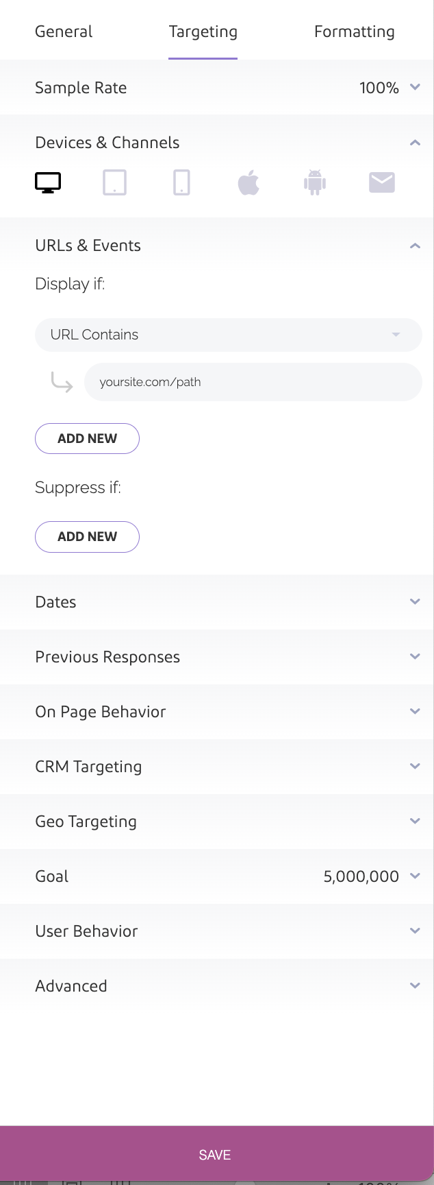 The configurations in “Targeting” determine the circumstances that the survey is eligible to render.
