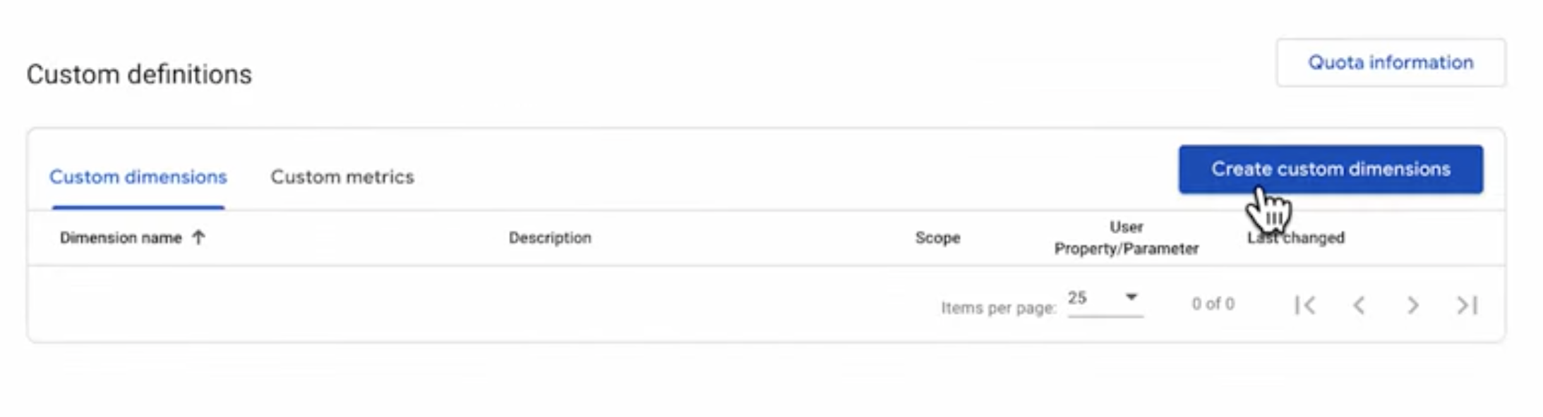 3. In the Custom dimensions tab the “**Create custom dimensions**” button.&#x20;