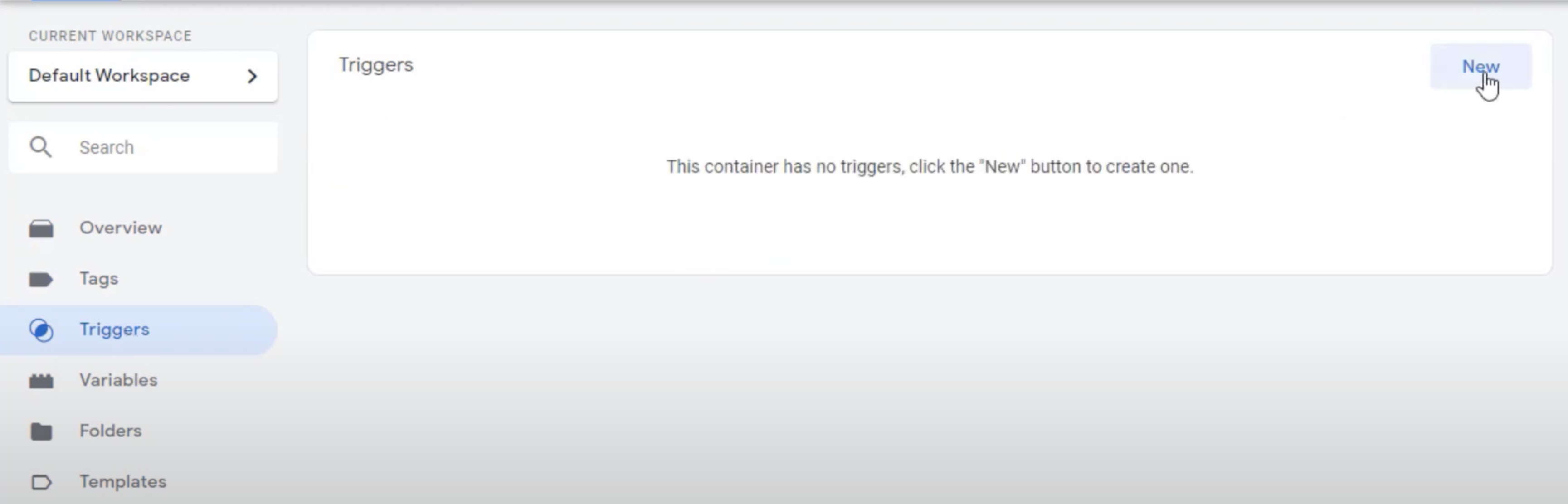 1. Click **Triggers** from the left sidebar menu ![and then](https://lh3.googleusercontent.com/QbWcYKta5vh_4-OgUeFmK-JOB0YgLLoGh69P478nE6mKdfpWQniiBabjF7FVoCVXI0g=h36) **New**.